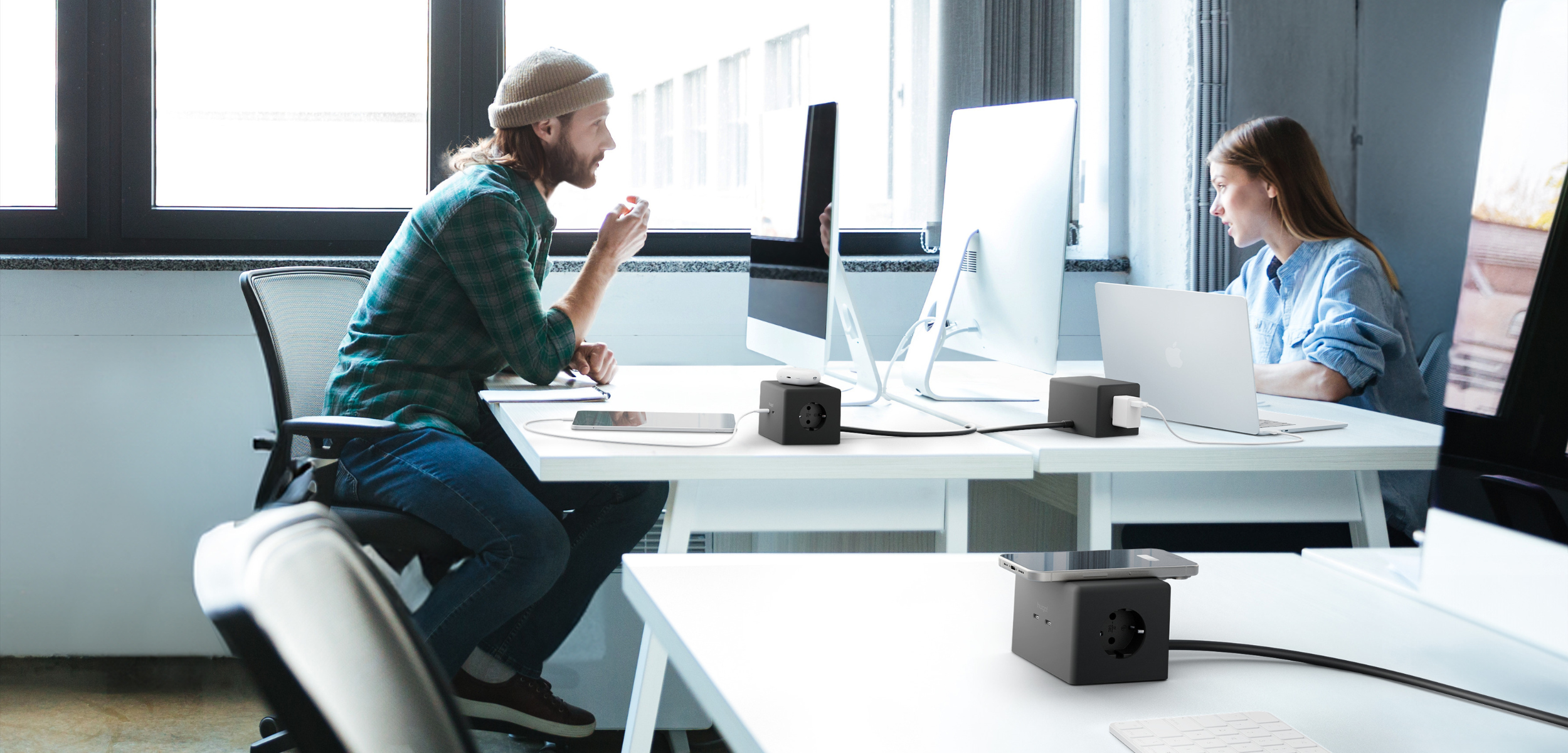 ✔ Co-Working-Spaces – Mehrfachsteckdose mit Schnellladefunktion und Wireless Charger für flexibles Laden von mehreren Geräten direkt am Arbeitsplatz