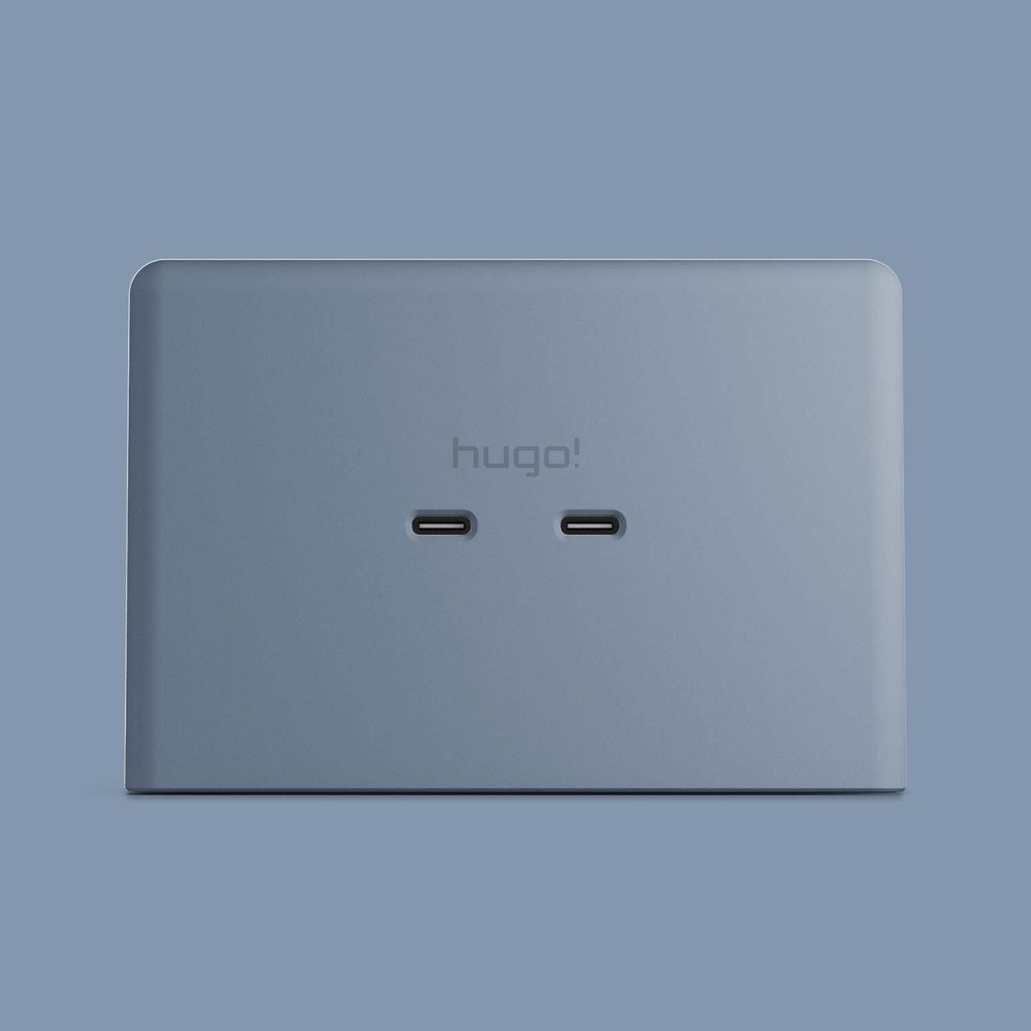 Mit dem hugo! ONE Steckdosenwürfel hast du überall die praktische Ladestation für schnelles Aufladen zur Hand.
